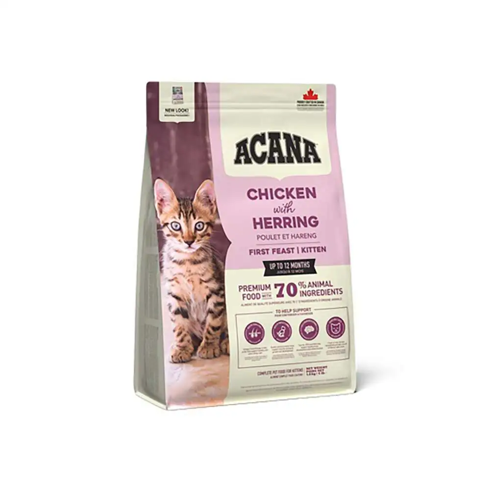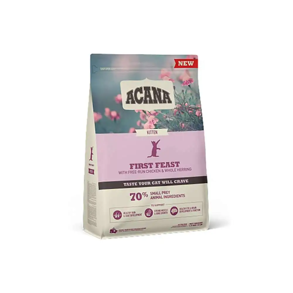 Acana Cat Kitten First Feast è un alimento ricco di ingredienti animali formulato per supportare la crescita e lo sviluppo dei gattini.
