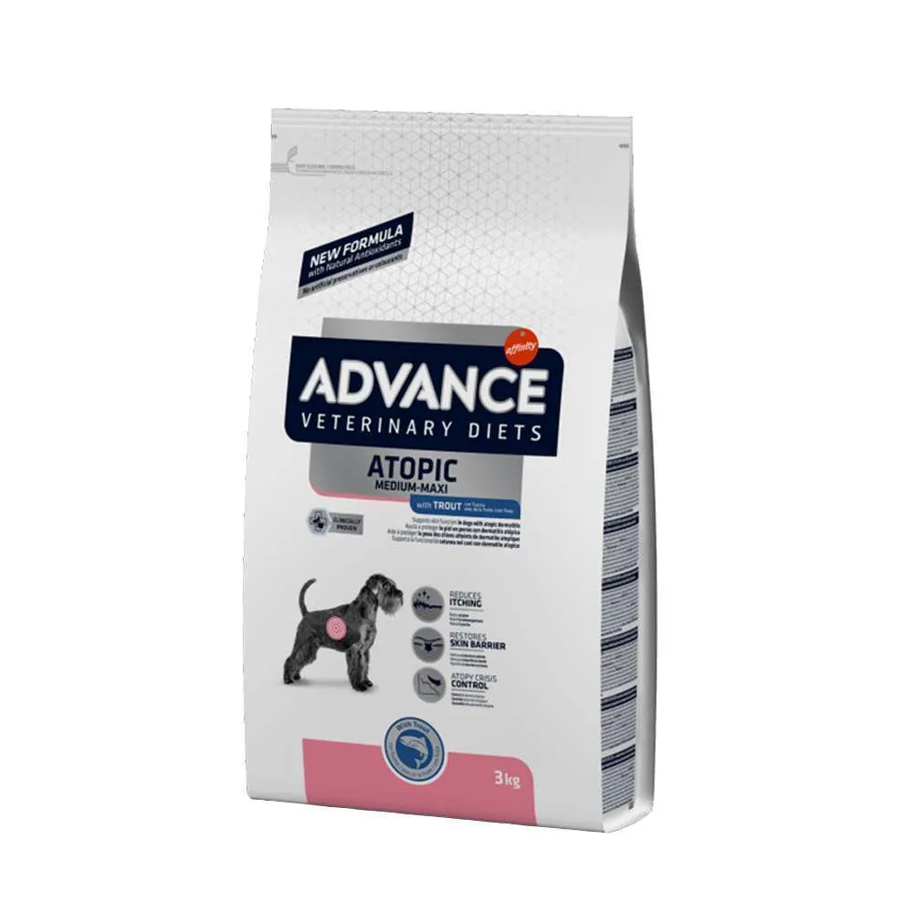 Advance veterinary diets cane Atopic è un alimento dietetico completo per cani di taglia media/maxi, formulato per la cura della pelle in caso di dermatite ed eccessiva perdita di pelo, oltre che per diminuire le intolleranze a ingredienti e nutrienti.