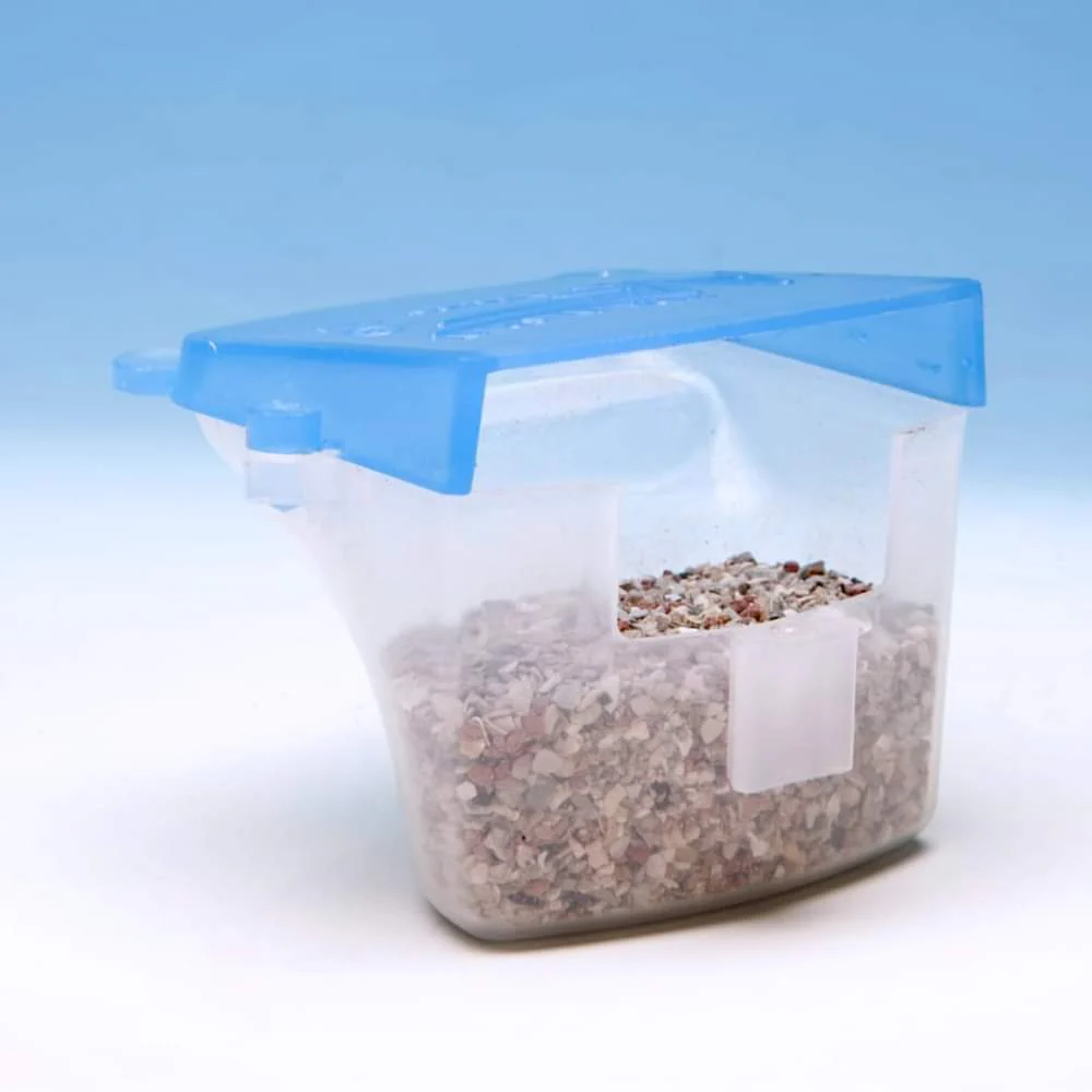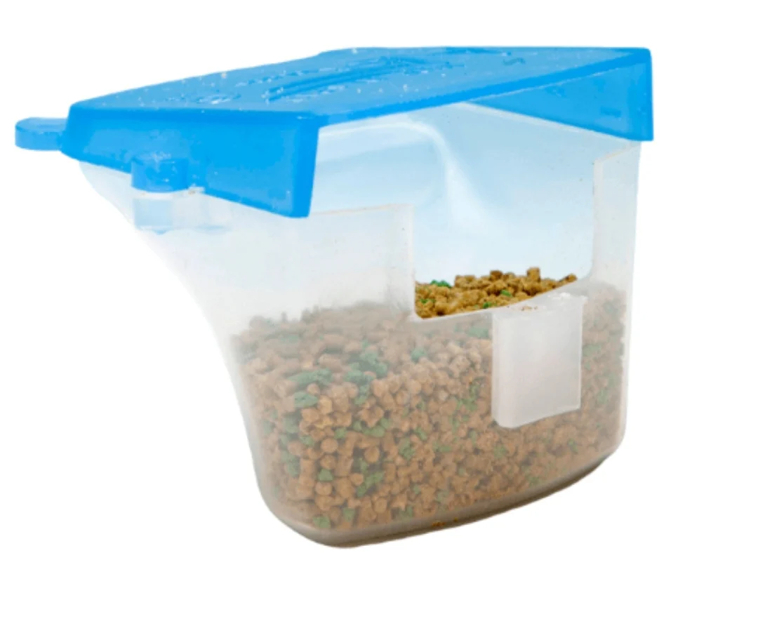 Con coperchio scorrevole per facilitare il riempimento della ciotola e rimovibile per facilitare la pulizia. Inoltre, il design impedisce agli uccelli di sollevare il coperchio e scappare.
