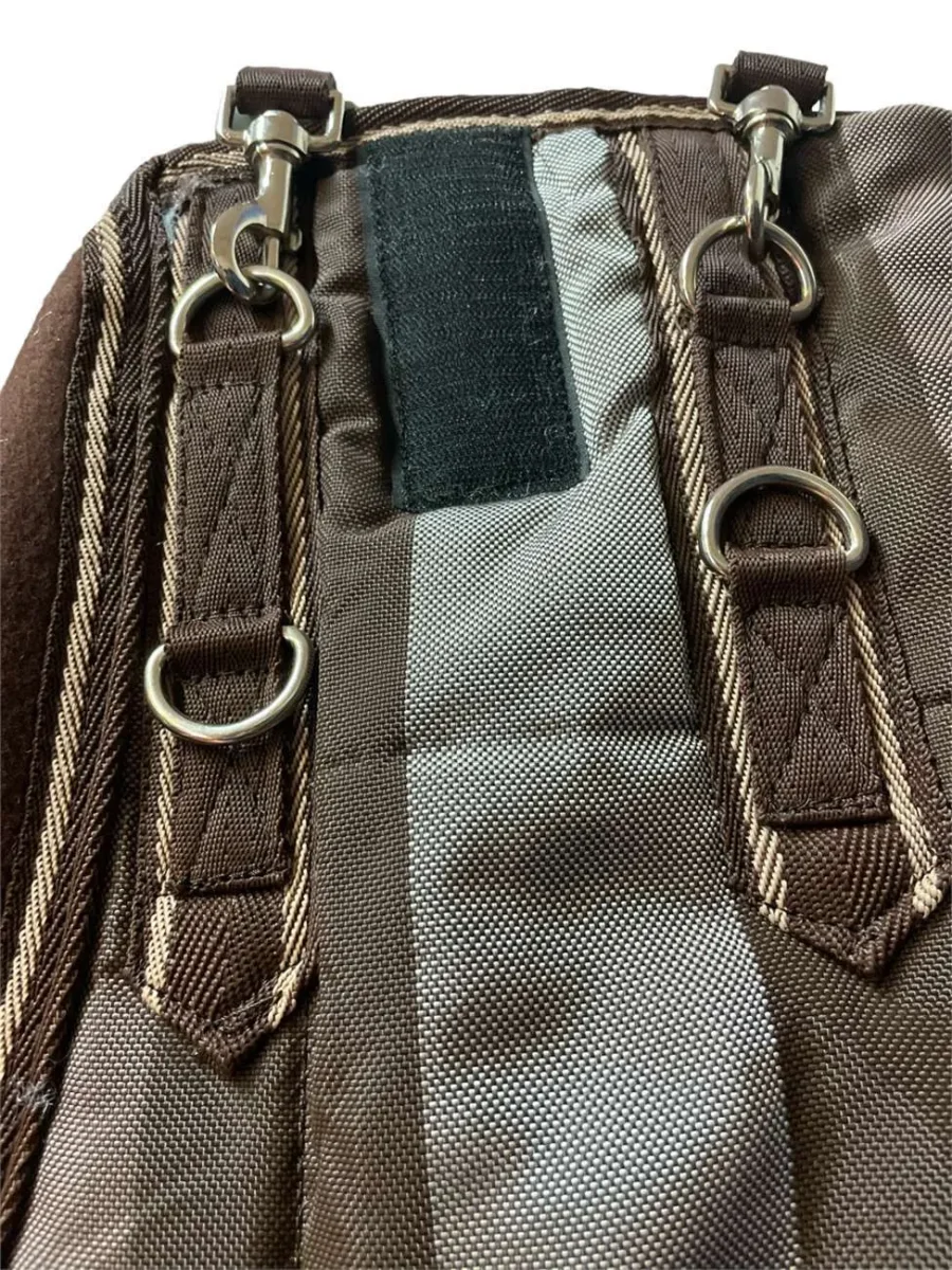 - cinghie incrociate con regolazione, copricoda, cinghie sottocoscia regoalbili;