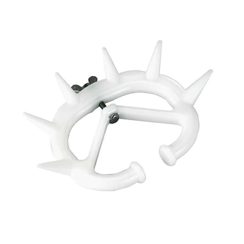Antisucchio in plastica flessibile di colore bianco; una vite di fissaggio assicura un adattamento facile e perfetto nella cartilagine del naso dei vitelli; indicato soprattutto per vitelli e bestiame giovane