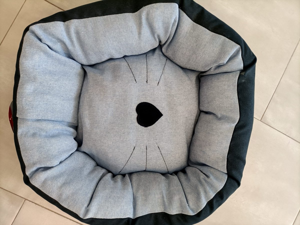 Graziosa cuccia rotonda nella simpatica fantasia con il cuore
