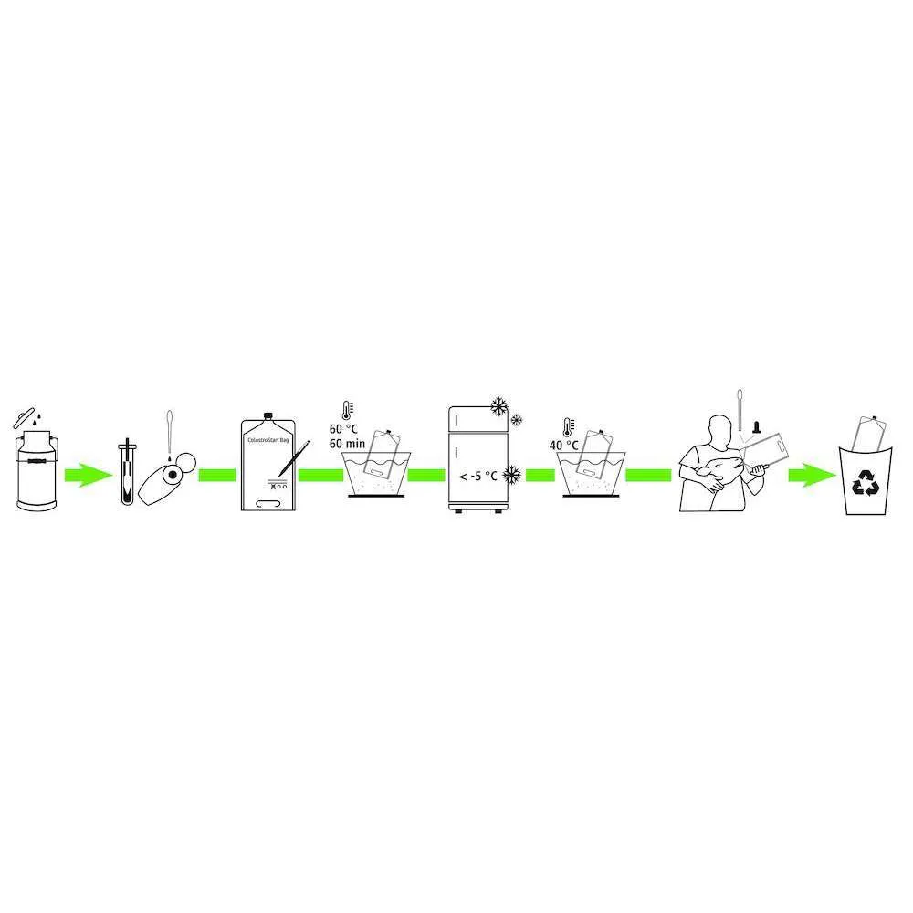 Il nutrimento del vitello nei primi giorni di vita o addirtittura dopo il parto è fondamentale per il suo sviluppo successivo. Il primolatte prodotto, detto anche colostro, contiene quantità di immunoglubine e sostanze nutritive elevatissime rispetto al latte vaccino normale. pertanto il vitello appena nato deve assumere immediatamente il prezioso colostro in grande quantità. Con il Colostro Start è possibile somministrare il colostro ai vostri vitelli neonati. Le sacche possono essere congelate e nuovamente riscaldate senza problemi.