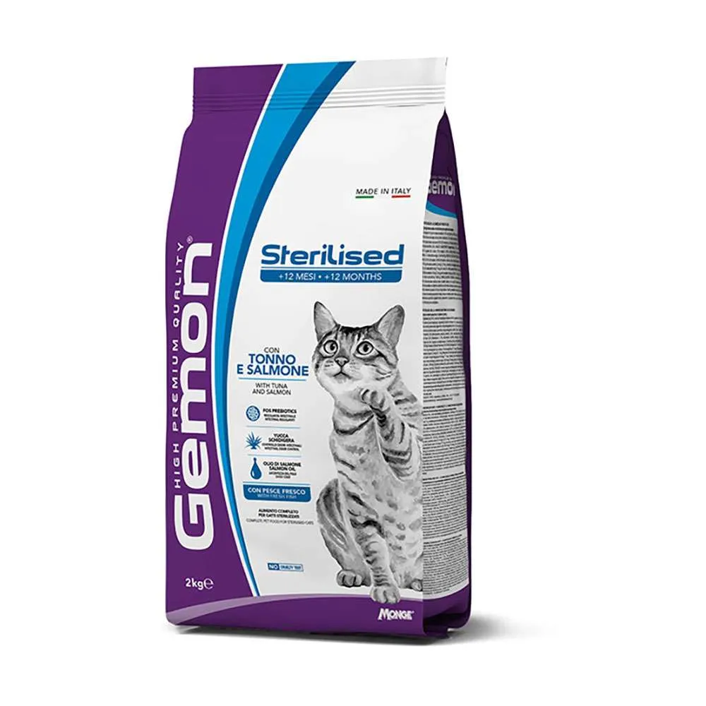 - Gemon gatto sterilizzato tonno e salmone è disponibile nei formati 2 o 7 kg;