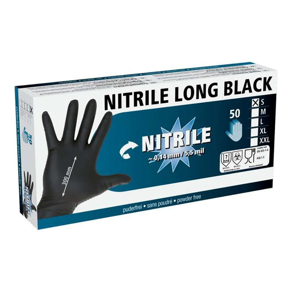 Guanti in nitrile monouso Long Black; lunghezza 30 cm; confezione da 50 pz