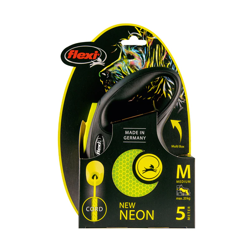 Guinzaglio retrattile Flexi New Neon M – Sicurezza e stile per cani fino a 20 kg, anche al buio!