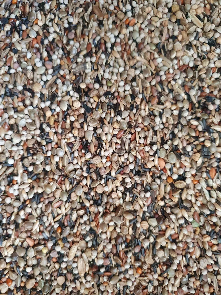 Perilla bianca – Niger – Canapa Canapa – Marienthistle seed – Cicoria – Plantina – Miglio giapponese, Navette – Scagliola – Semi selvatici – Lino – Ravanello – Frutti di rosa canina