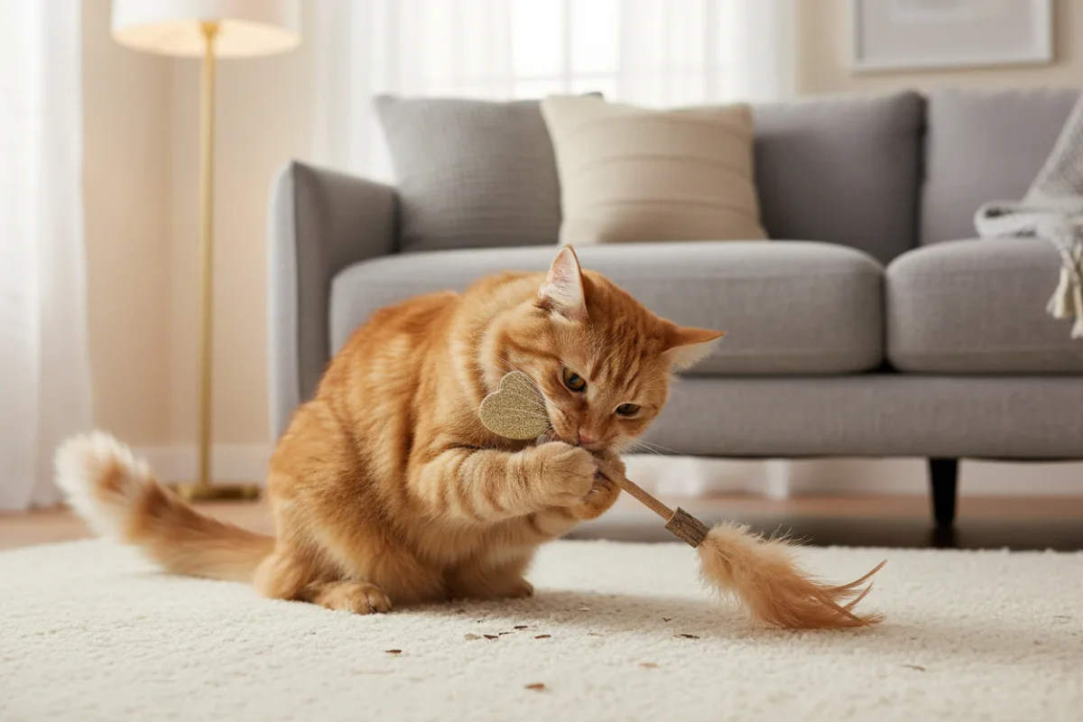 Lollipop Trixie con bastoncino di matatabi, cuore pressato in catnip e piumetta è il gioco naturale ad alta attrattività che favorisce l’igiene dentale, il gioco attivo e il rilassamento. Ideale per gatti curiosi, favorisce benessere quotidiano, riduzione dello stress e arricchimento sensoriale.