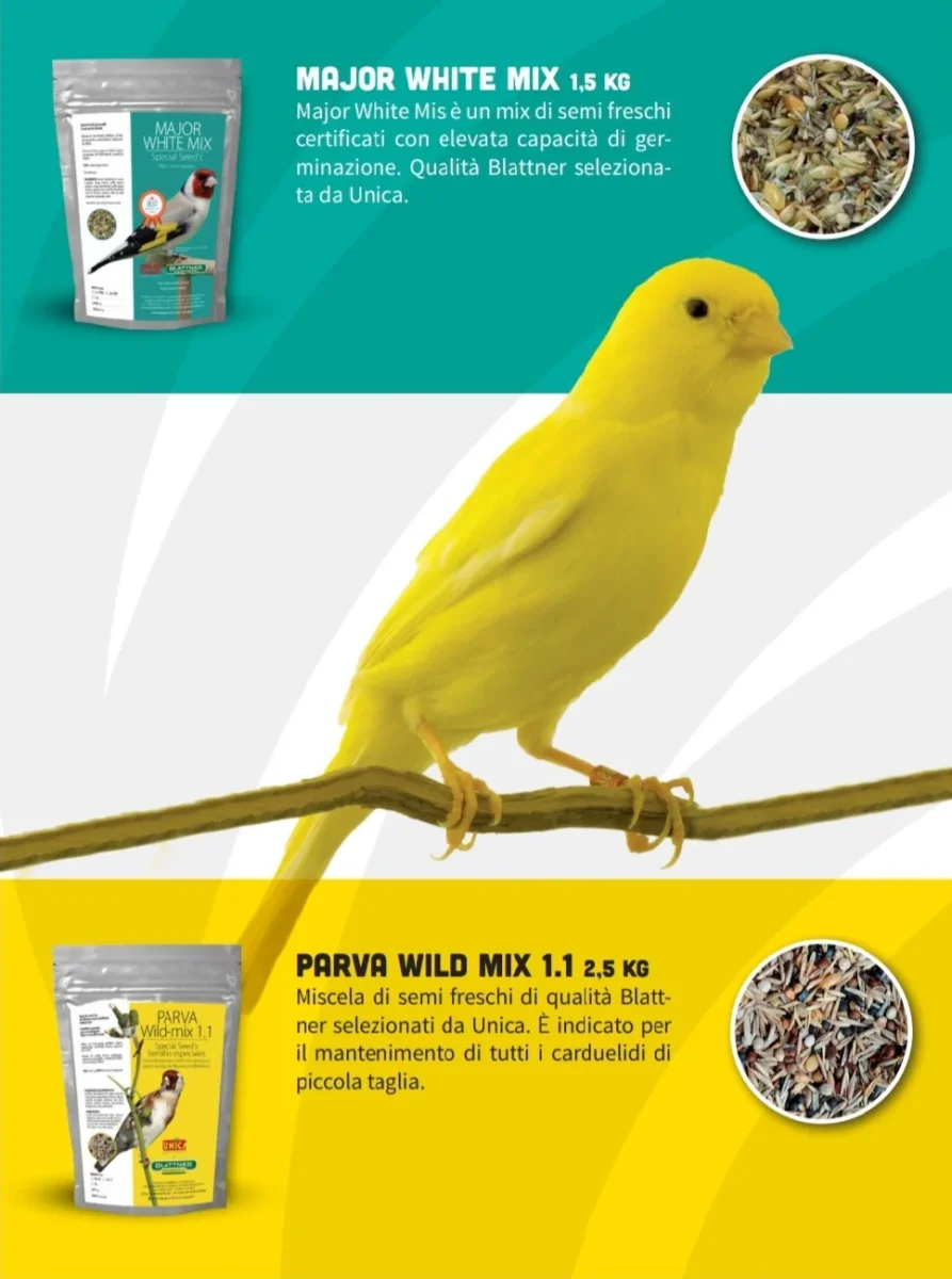 Miscela di semi freschi certificati ad alta capacità germinativa. Adatto a tutti i tipi di cardellini.