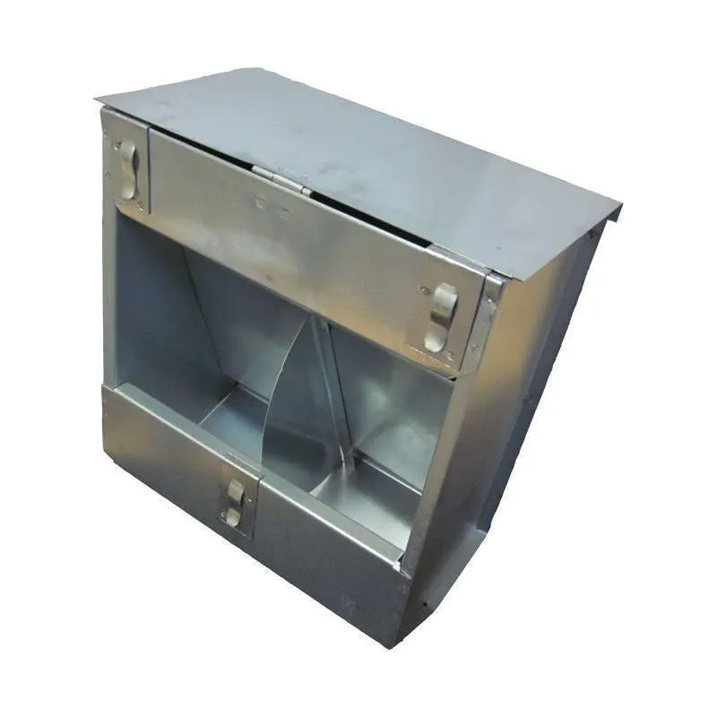 Mangiatoia per conigli a 2 scomparto in lamiera zincata; con coperchio. Dimensioni 21 x 11 x 23 h