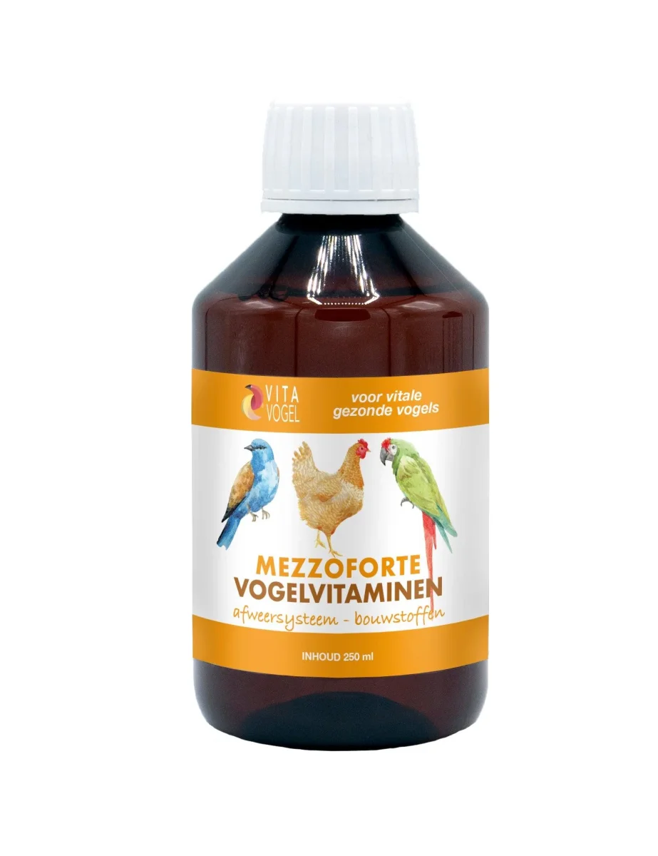 Mezzoforte è una preparazione vitaminica bilanciata e contiene vitamine, minerali, aminoacidi, glucosio e acidi organici per il tuo uccello. Può essere dosato nell’acqua degli uccelli per il trattamento orale della carenza vitaminica.