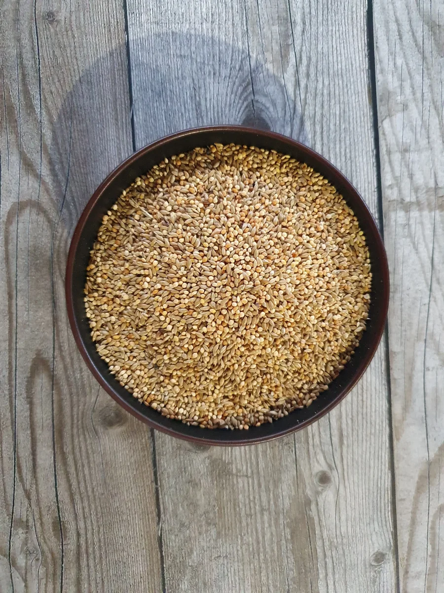 I fringuelli di Gould sono adorati sui semi di erba, in particolare i semi di erba pagima a cui sono affezionati. Puoi aggiungerlo come supplemento extra alla dieta quotidiana. Link al prodotto QUI