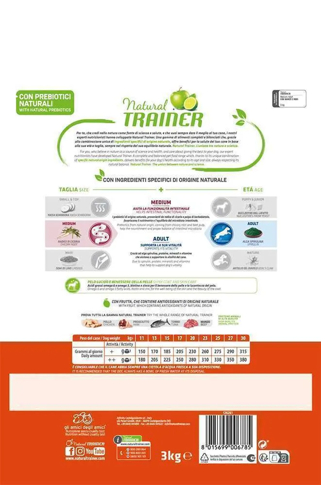 Natural Trainer cane adult medium manzo è un alimento completo per cani adulti di taglia media.