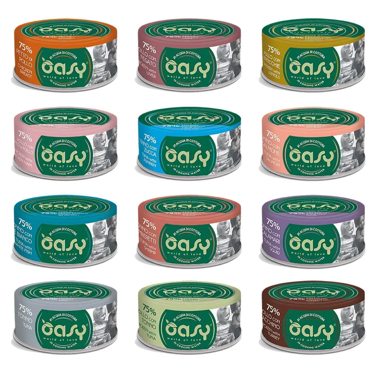 - gusti disponibili : kitten pollo con uova, adult petto di pollo, pollo con fegato, pollo con lenticchie, pollo con prosciutto, pollo con tacchino, pollo con tonno, tonno, tonno con calamari, tonno con gamberetti, tonno con pesce bianco, tonno con salmone, tonno con zucca.