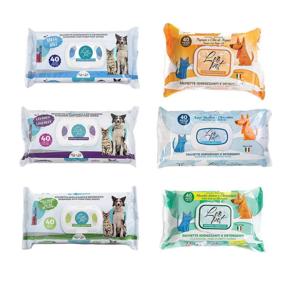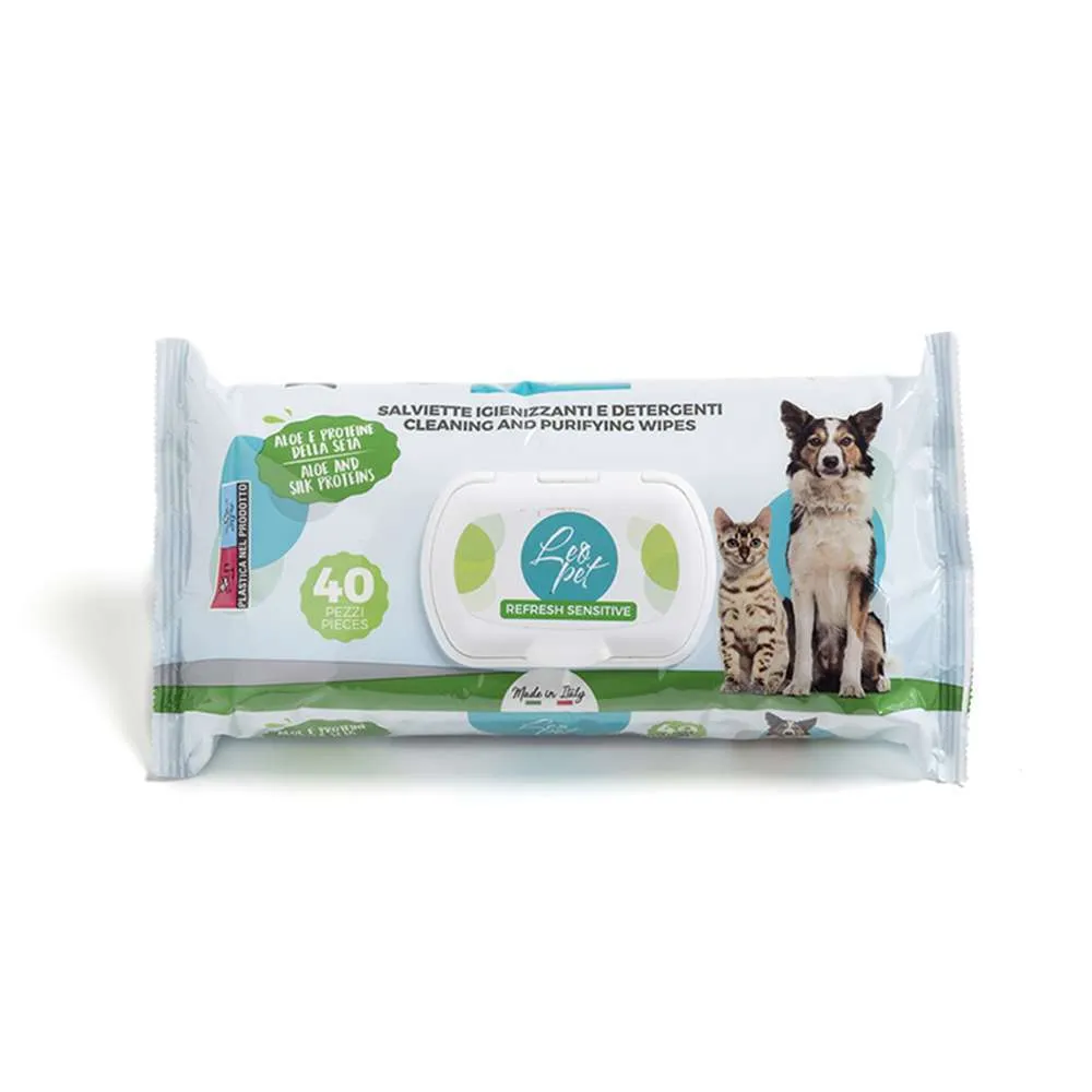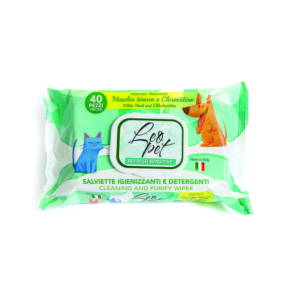 Salviette igienizzanti Leopet per cane e gatto da 40 pz