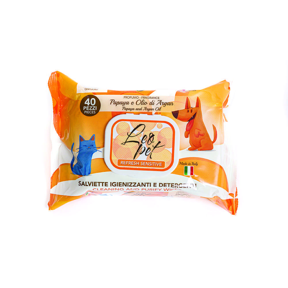 Salviette igienizzanti Leopet per cane e gatto sia cucciolo che adulto ideale per la pulizia quotidiana del pelo e delle zampe
