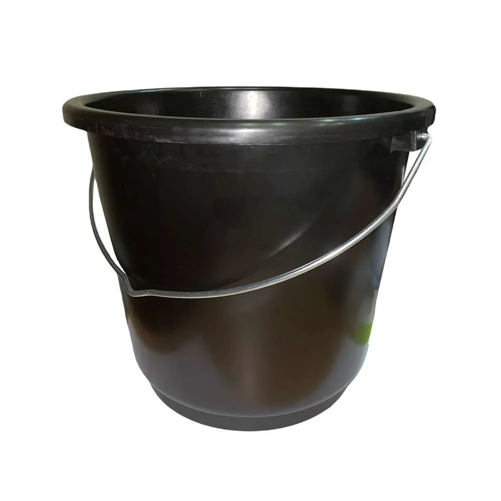 Secchio in plastica da 12 litri di colore nero; con manico in ferro; materiale stabile a prova di rottura ed estremamente flessibile; con scala graduata