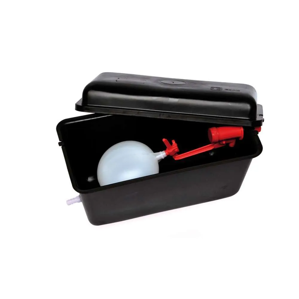 Serbatoio in plastica da lt. 8 con galleggiante; uscita portagomma in plastica da 10 mm; galleggiante regolabile in plastica; pressione di esercizio da 0,5 a 10 bar; colore nero.