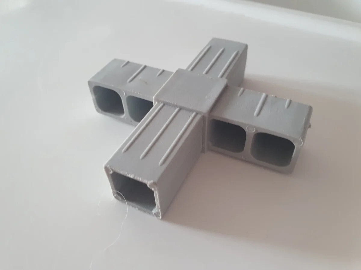 Connettore a croce adatto per profili da 20 mm.