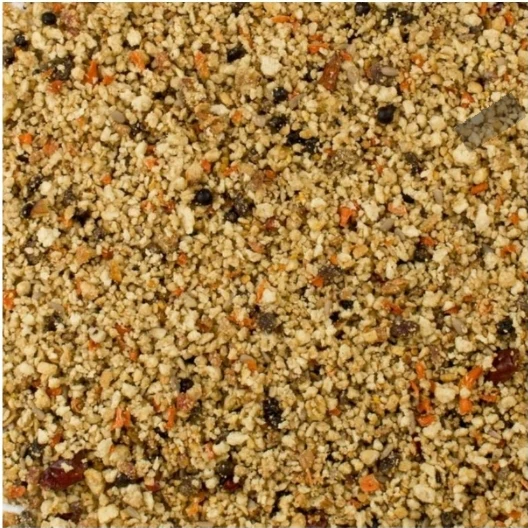 Contiene briciole extra grossolane e gustosi extra, tra cui frutta e noci. Senza coloranti artificiali. Il morbido alimento può essere somministrato direttamente, ma può anche essere miscelato con altri tipi di pastoncino all’uovo o, ad esempio, con semi di germe.