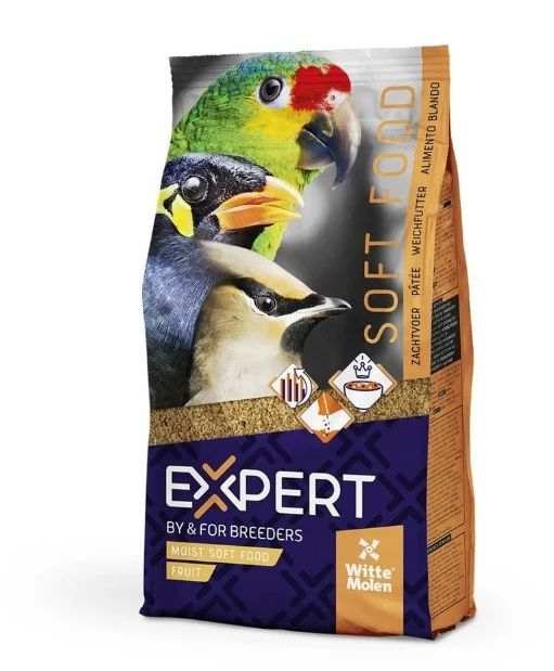 Questo alimento morbido รจ stato sviluppato per gli uccelli che mangiano frutta. Con una grande quantitร di frutta (12,5%), tra gli altri. mango e papaia, uvetta e bacche di sorbo. Il morbido alimento puรฒ essere somministrato direttamente, ma puรฒ anche essere miscelato con altri tipi di pastoncino all’uovo o, ad esempio, con semi di germe.