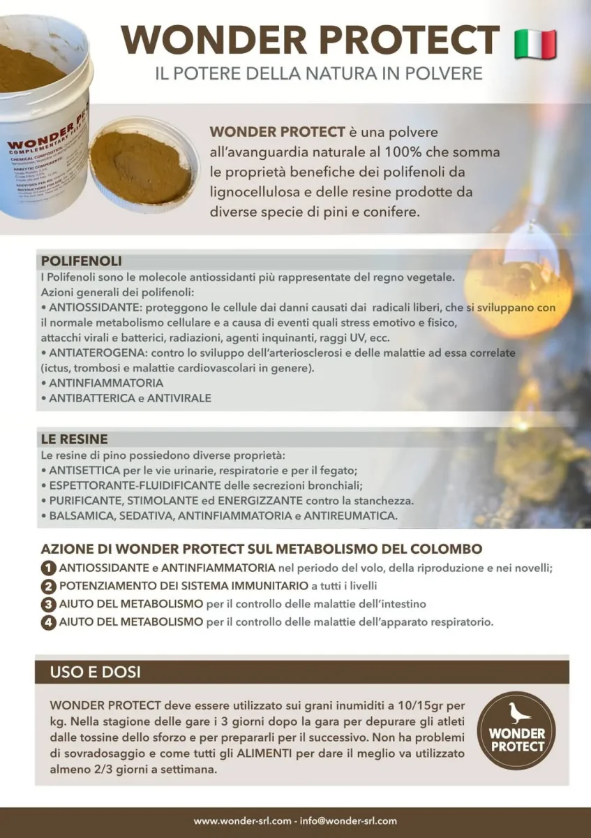Wonder Pigeon Protect 500gr (Antiossidante – Sistema immunitario – Metabolismo) 100% Naturale