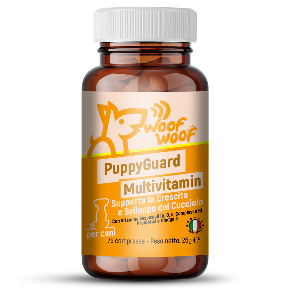 PuppyGuard Multivitamin è la scelta perfetta per garantire al tuo cucciolo tutte le vitamine e i nutrienti necessari per crescere sano e forte!